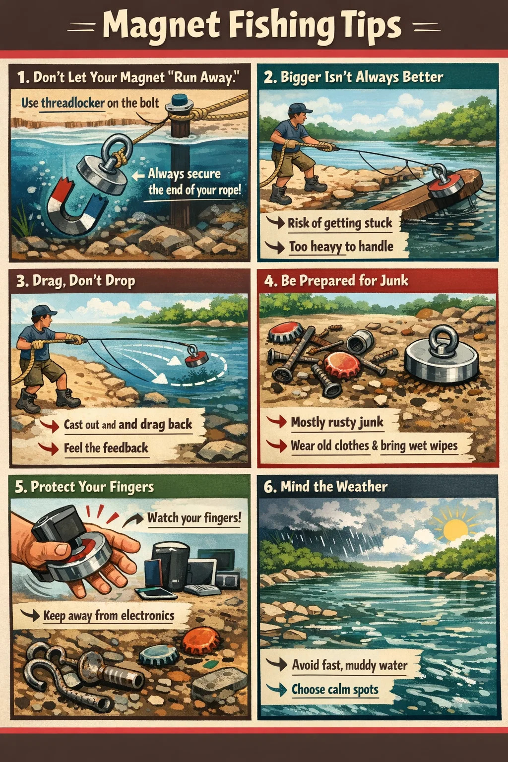 Birçok kişi mıknatıs avcılığına ilk başladığında tek yapması gerekenin suya mıknatıs atmak olduğunu düşünür. Ancak birkaç denemeden sonra herkes "Keşke bu ipuçlarını daha önce bilseydim!" diye yakınmaya başlayacak.