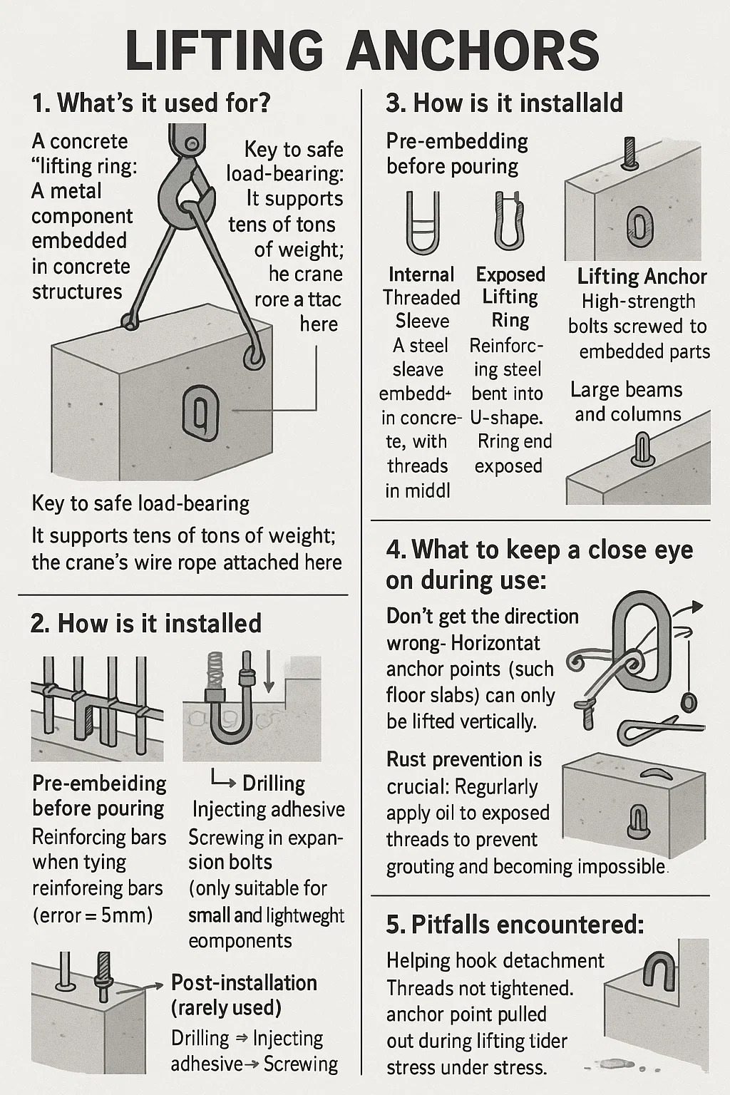Beton bir "kaldırma halkası": Beton yapılara (duvar panelleri, merdivenler, kirişler) gömülü metal bir bileşen. Kaldırmak için kancalar veya cıvatalar doğrudan üzerine vidalanır.