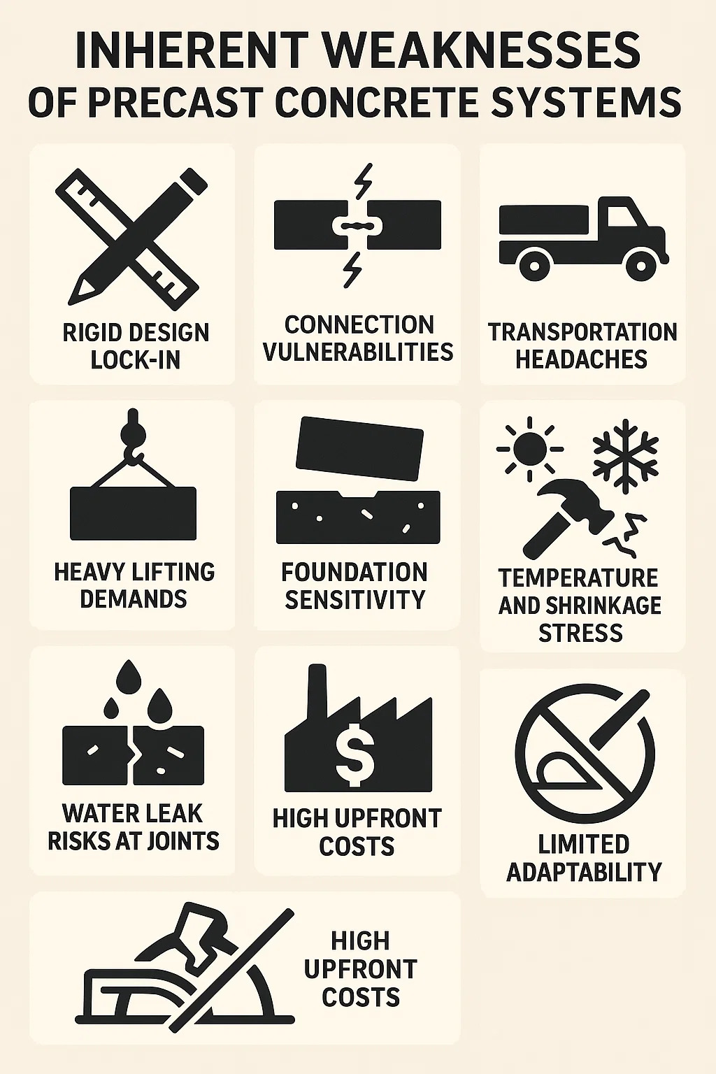 İşte doğuştan gelen zayıflıklar prefabrik beton sistemleri :